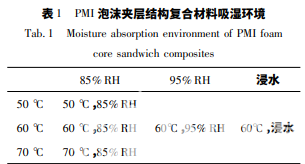 4) 在溫度小于 60 ℃,非浸水環(huán)境中,PMI 泡 沫夾層結構復合材料的飽和吸濕率可以通過相同 條件下面板和 PMI 泡沫的吸濕率進行預測。