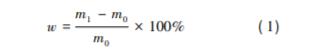 參照 GB /T 15780—1995《竹材物理力學性質 試驗方法》測定竹材含水率。對截取的新鮮竹筒 上方 2 cm 處尺寸為 10 mm×10 mm×t 的小竹塊進 行含水率測試。取 10 個小竹塊稱質量后放入 80 ℃烘箱中恒溫干燥至絕干,并記錄絕干竹塊的質 量。竹材含水率( w) 計算公式為: